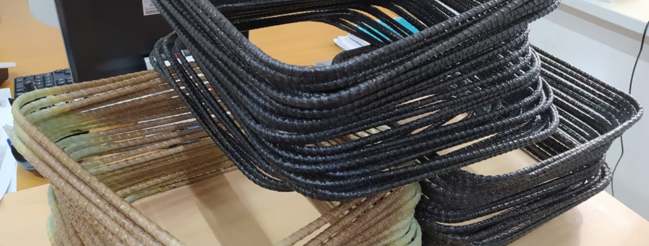 The production line for curved frame elements made of fiberglass or basalt fiber.